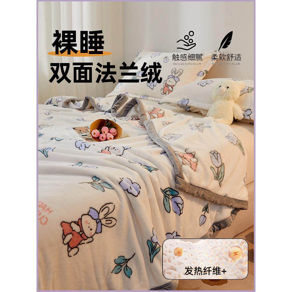 冬季法兰珊瑚绒床单毛毯加厚铺床毯子床上用学生宿舍单人绒毯加绒