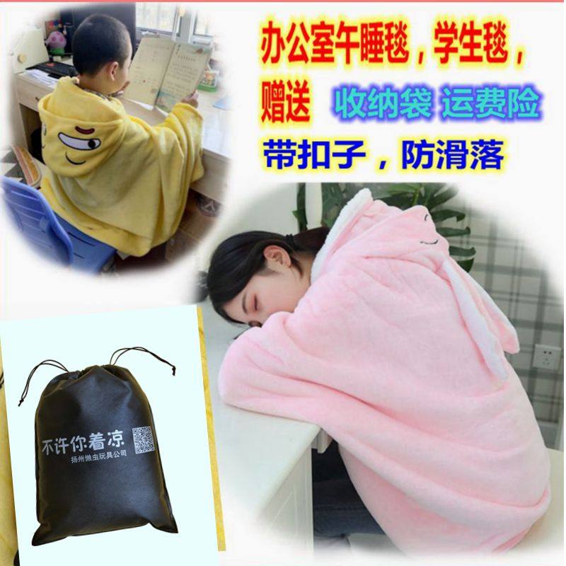 学生午睡毯教室午休披肩斗篷办公室空调毯法兰绒单人绒毯加厚连帽