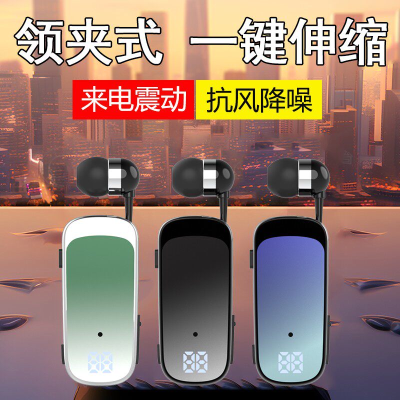 领夹式蓝牙耳机无线入耳可一键伸缩单耳夹领来电震动商务通话开车