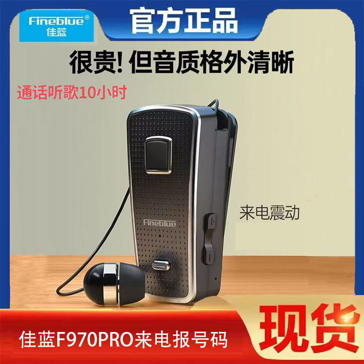 佳蓝F970来电报号码高端领夹式蓝牙耳机震动伸缩拉线入耳式防丢
