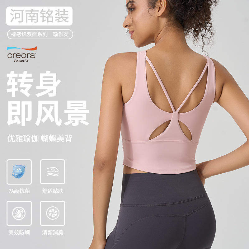 新款夏季固定杯无痕休闲健身运动内衣女美背裸感可调瑜伽背心上衣