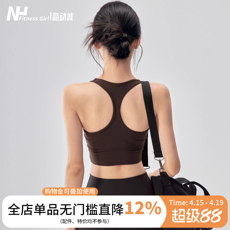 健身女孩带胸垫瑜伽背心外穿防震运动内衣工字美背普拉提训练文胸