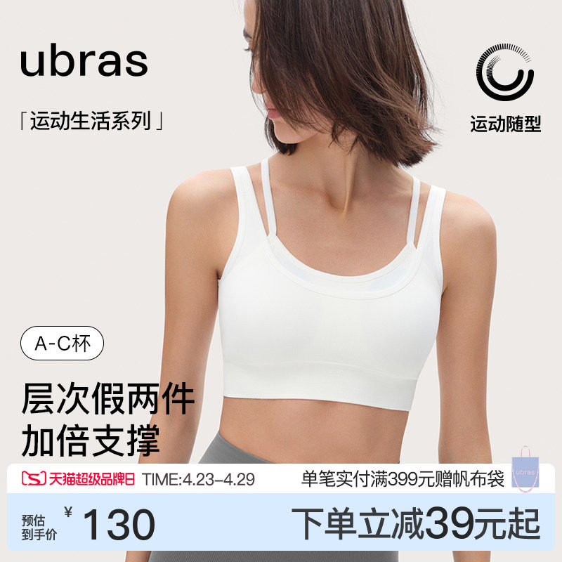 ubras无缝假两件运动内衣女透气中强度背心瑜伽吊带跑步文胸