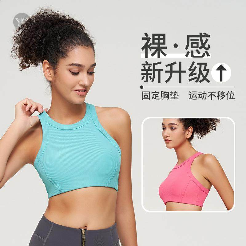 高弹力新款轻柔高弹带杯螺纹瑜伽背心聚拢防震跑步健身运动内衣女