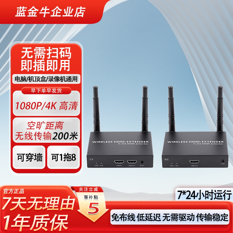 HDMI无线传输器200米高清投屏电脑连电视投影仪延长收发器可穿墙