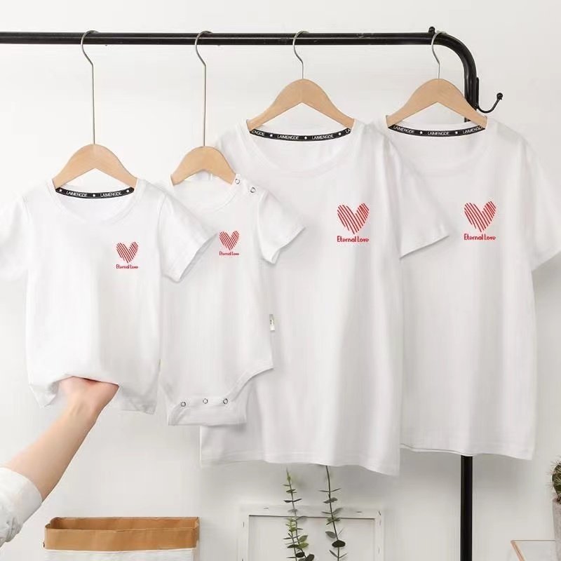 爱心亲子装夏装一家三四口短袖全家装2025新款母子母女装洋气t恤