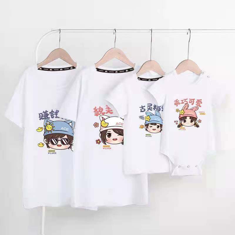 夏装亲子装T恤短袖全家母子母女包屁衣一家三口四口百天婴儿拍照