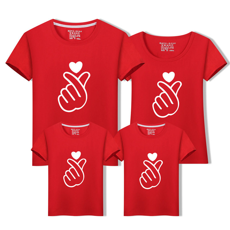 2020新年亲子装夏装短袖T恤比心一家三口四口全家庭装幼儿园班服