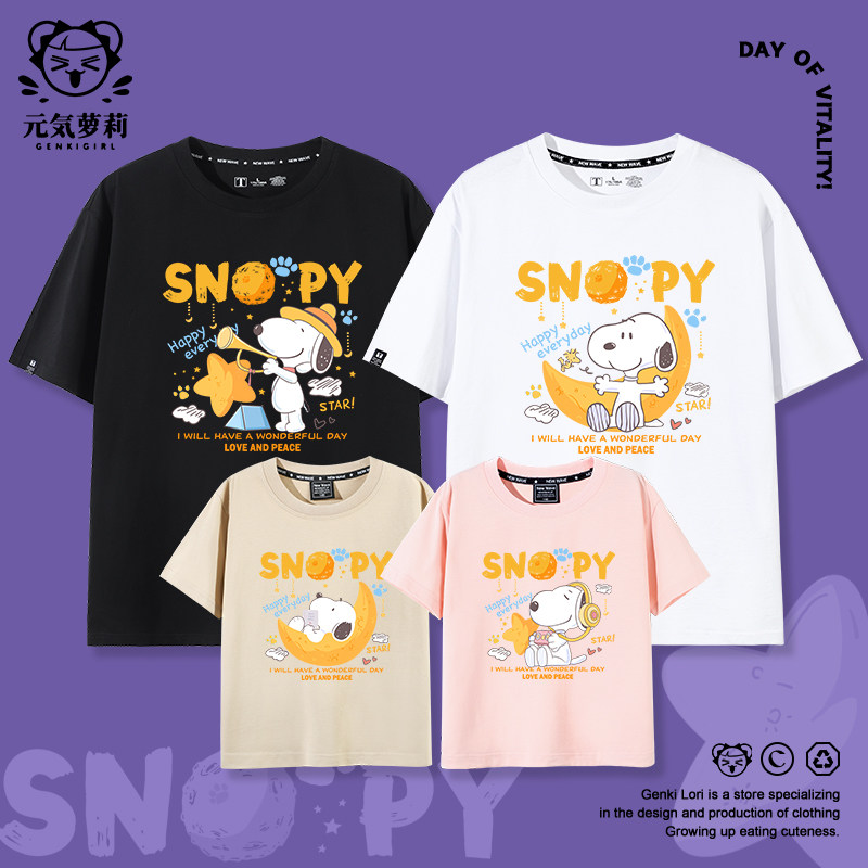 史努比亲子装一家三口2025新款四口全家装卡通高端不一样母女夏装