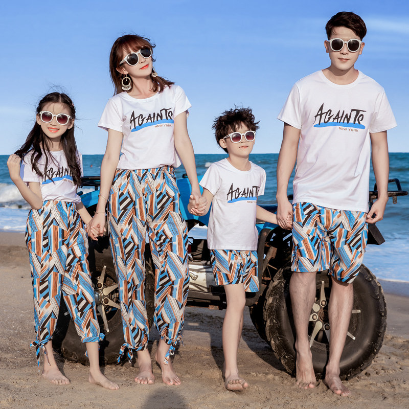 海边度假沙滩装全家装亲子装母女夏装新款潮三口一家四口洋气套装
