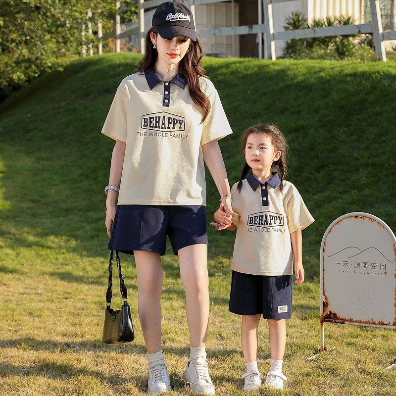 亲子装夏装全家装潮一家三口四口装母女短袖活动polo衫连衣裙夏季