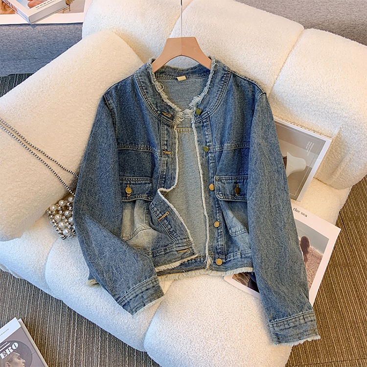 复古水洗牛仔2025春秋毛边新款宽松外套小个子短款夹克上衣百搭款