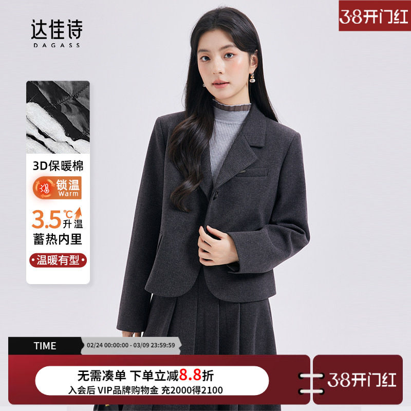 达佳诗灰色短款毛呢外套女小个子厚西装套装教师面试穿搭冬季正装