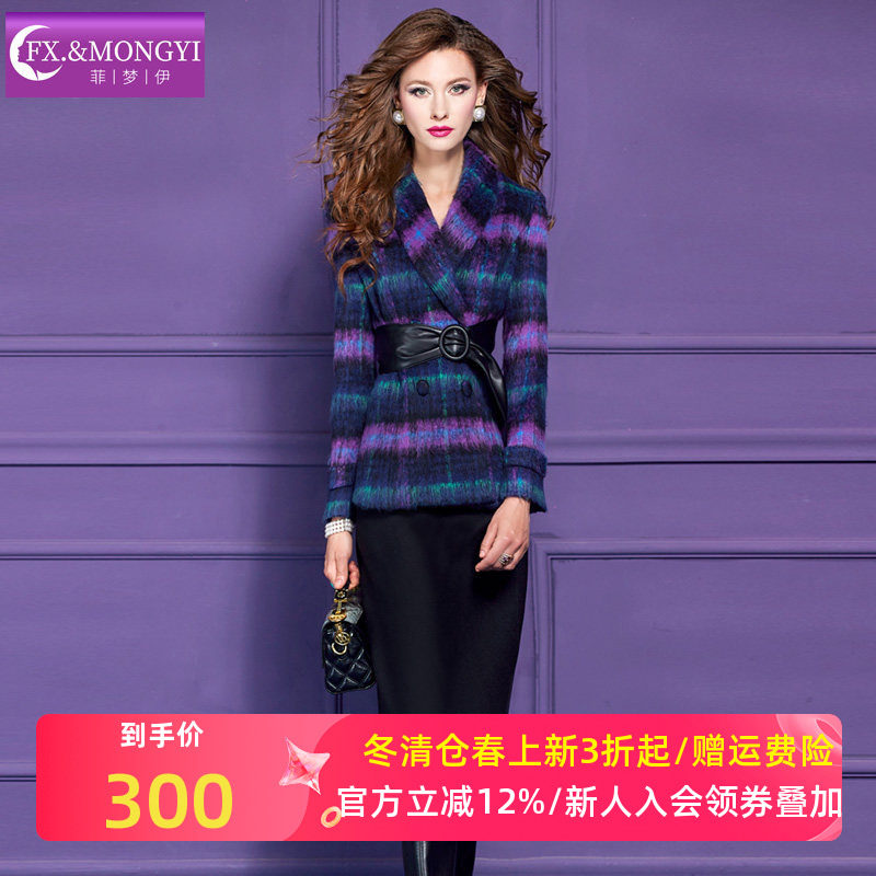 菲梦伊含羊毛复古毛呢套装女冬季设计感木耳边西装外套鱼尾半身裙