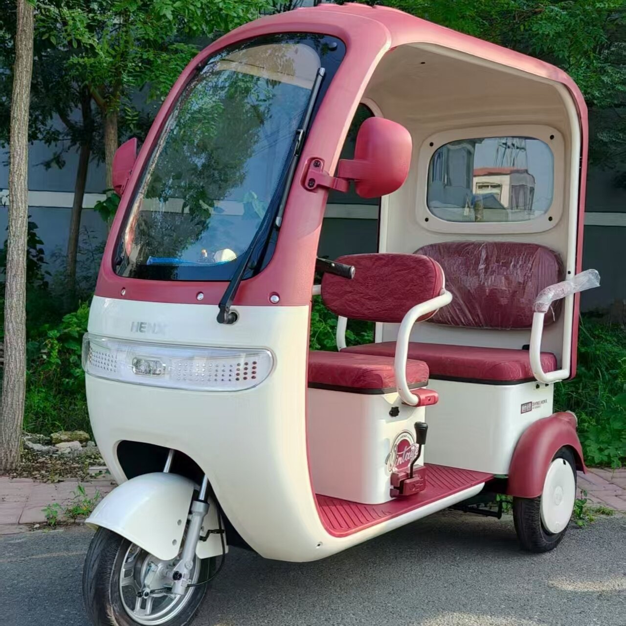 电动休闲三轮车家用三座成人代步车买菜女士接送孩子上学生带棚牌