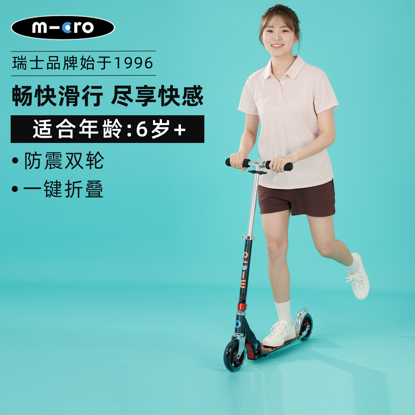 瑞士micro迈古疾速青少年2轮滑板车9岁大童防震滑轮车成人代步车
