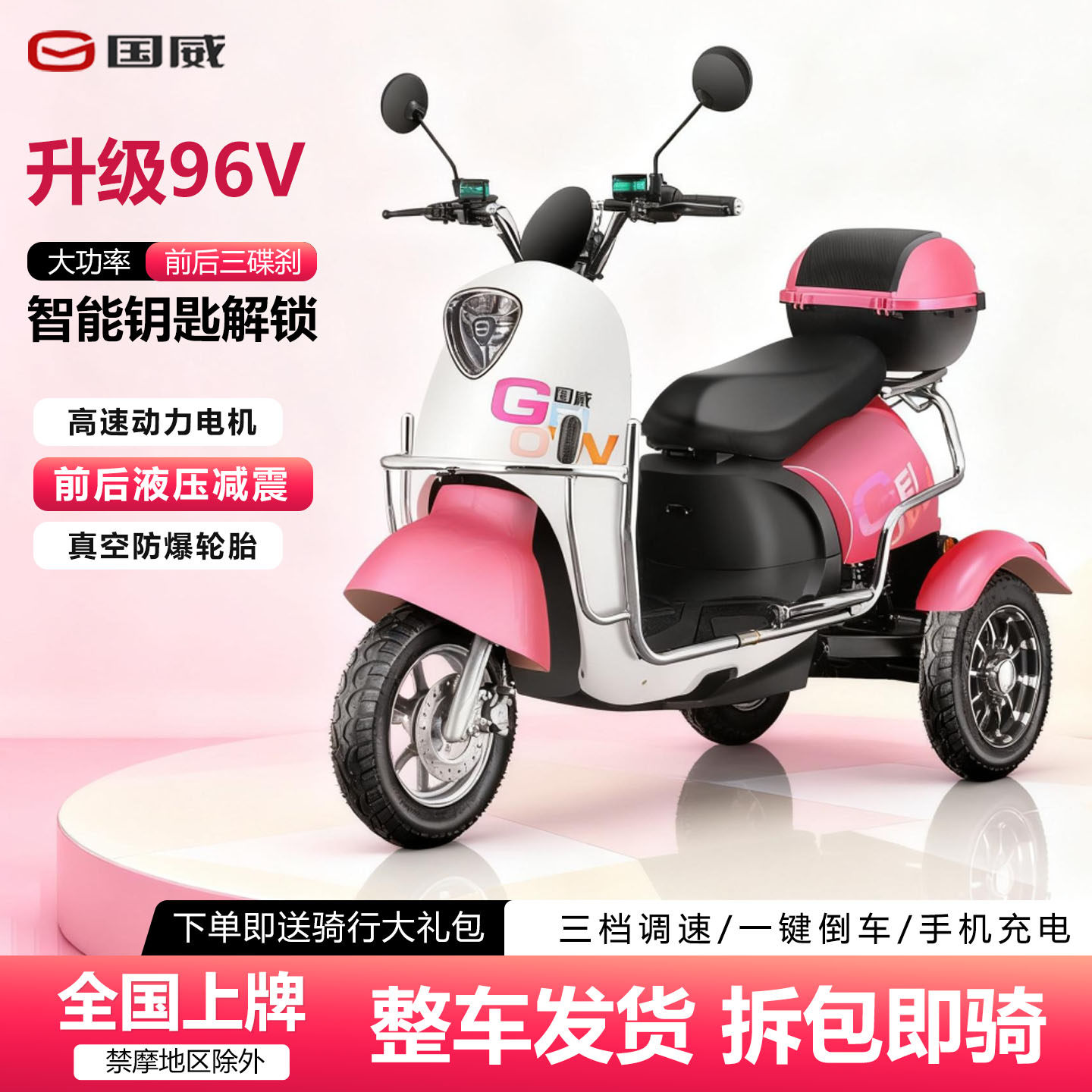 国威电动三轮车家用成人代步车96V三轮电动车电瓶车接送孩子爬坡