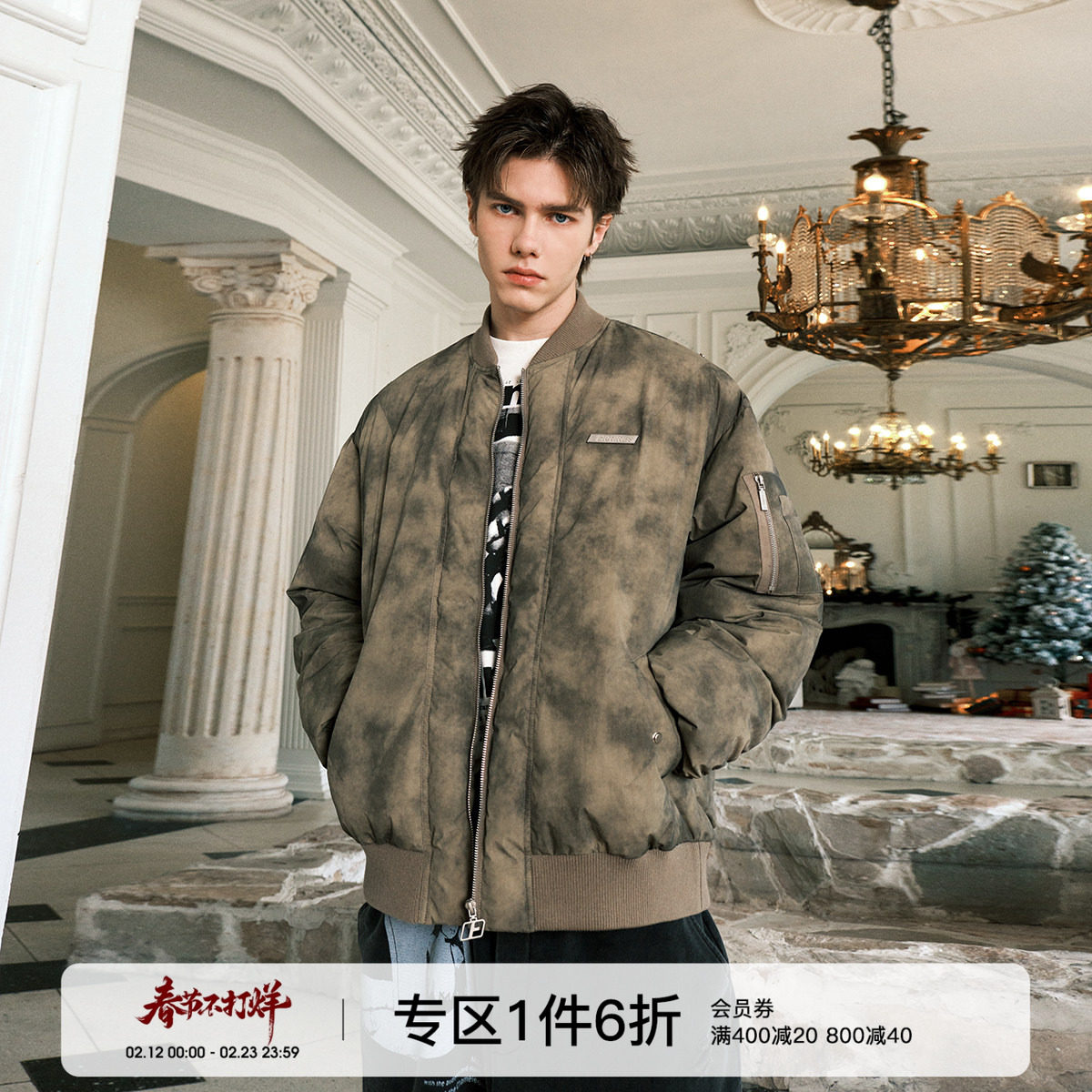 UOD冬季羽绒服2026新款飞行员夹克男短款刺绣工装外套潮牌棒球服