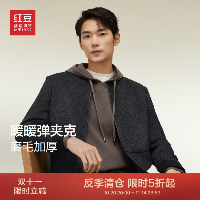 [热燃/绵羊毛]利郎官方 白鸭绒毛呢大衣男士2025冬季短款夹克外套