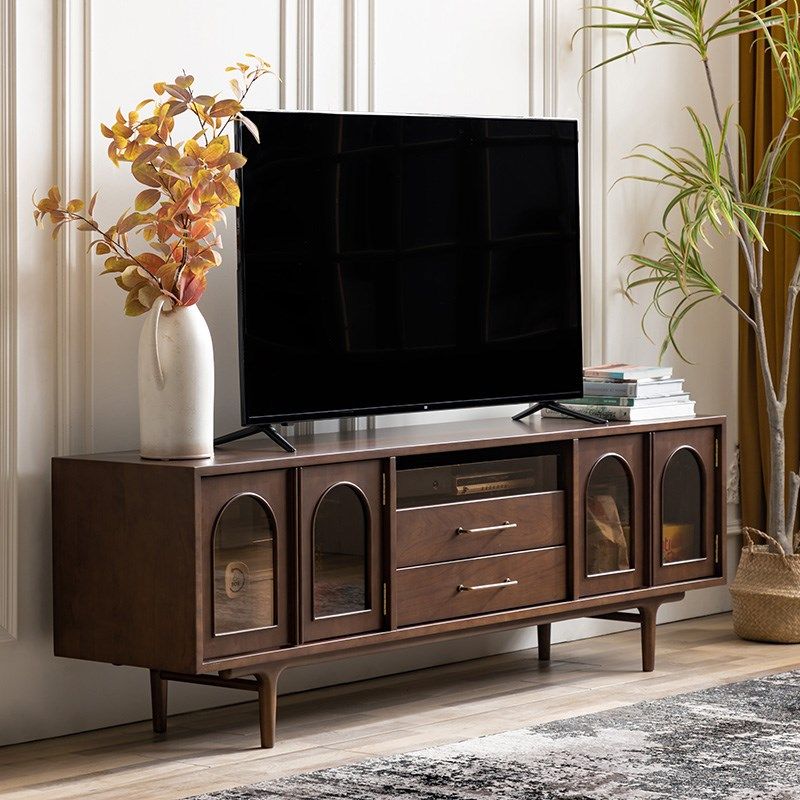 和年美家法式复古电视柜樱桃实木拱形小户型原木风客厅北欧视听柜