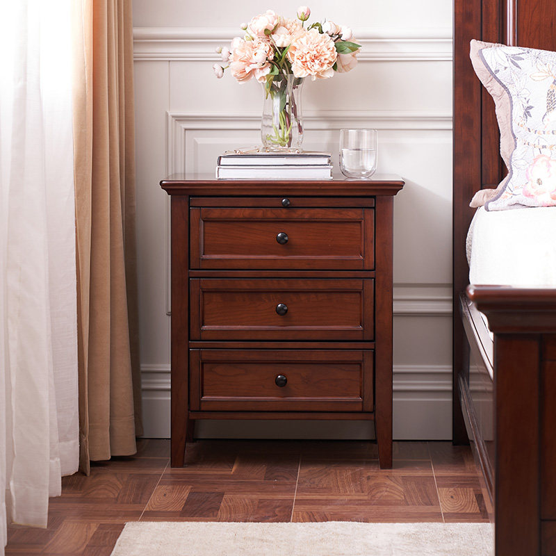 和年美家美式全实木三抽床头柜卧室储物柜整装床边储物收纳小柜子