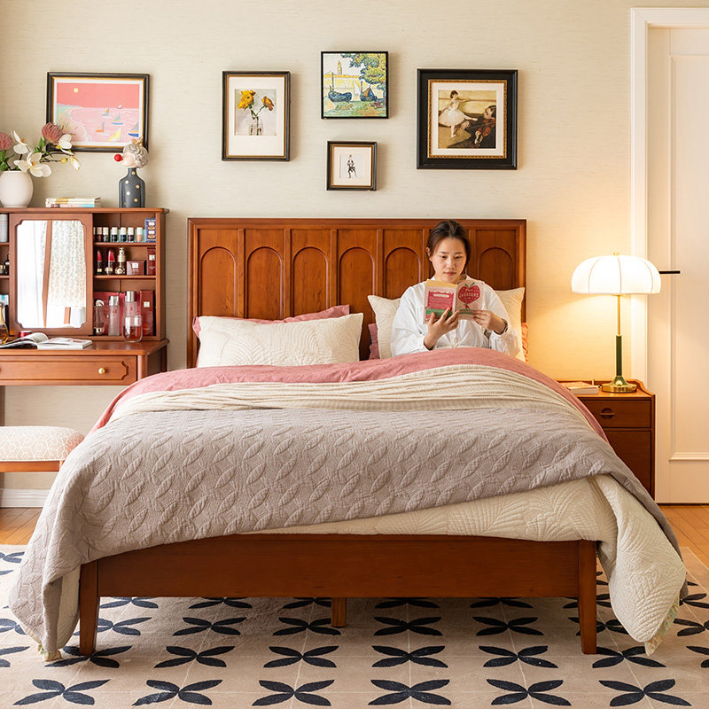 和年美家实木床樱桃木1.5m法式小户型卧室大床1.8m主卧复古双人床