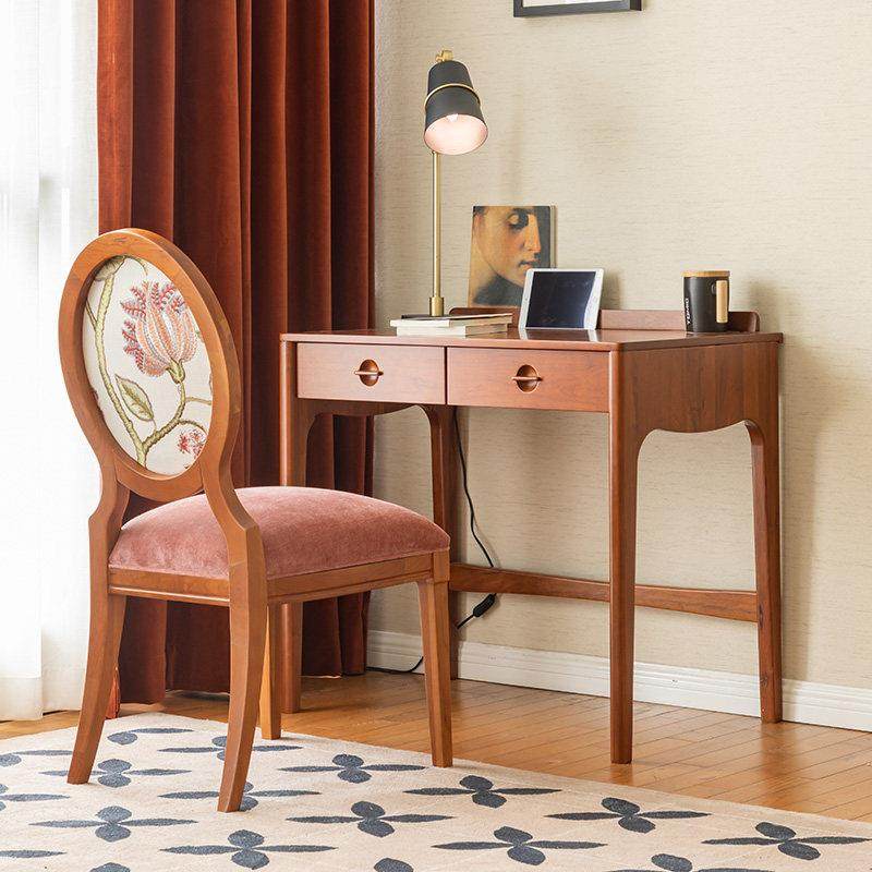 和年美家美式复古实木餐桌小户型艾美刺绣风餐椅书房靠背椅子书椅