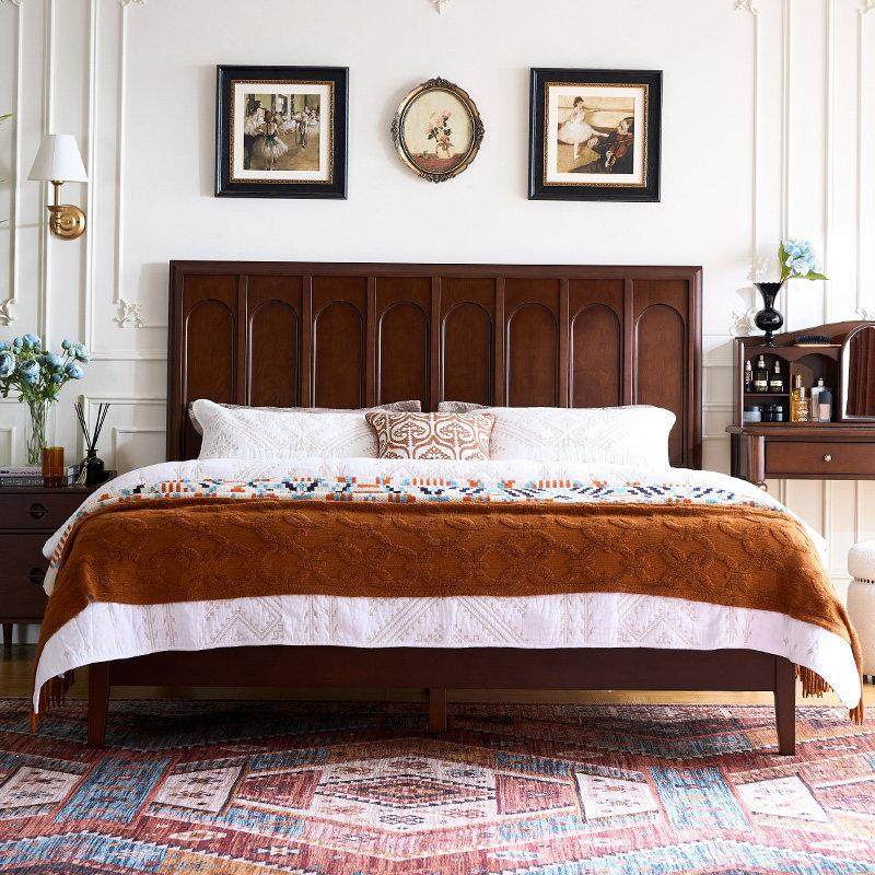 和年美家美式复古全实木法式婚床樱桃木双人床简美卧室 1.8米大床