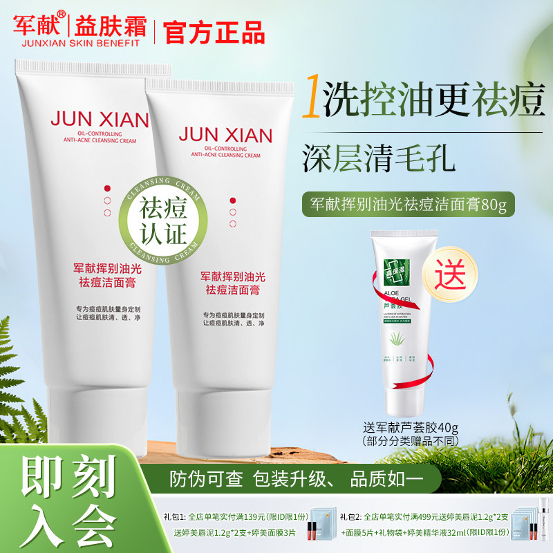 军献益肤霜祛痘洁面膏补水控油清洁毛孔保湿洗面奶男女旗舰店正品