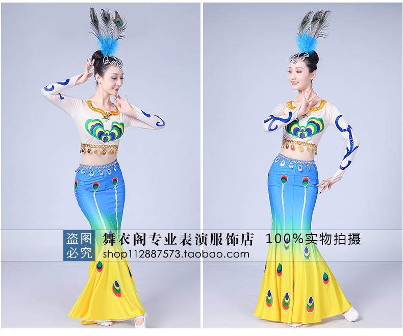 傣族舞蹈演出服鱼尾裙傣家的女儿傣家的雨舞蹈服孔雀舞练功艺考服
