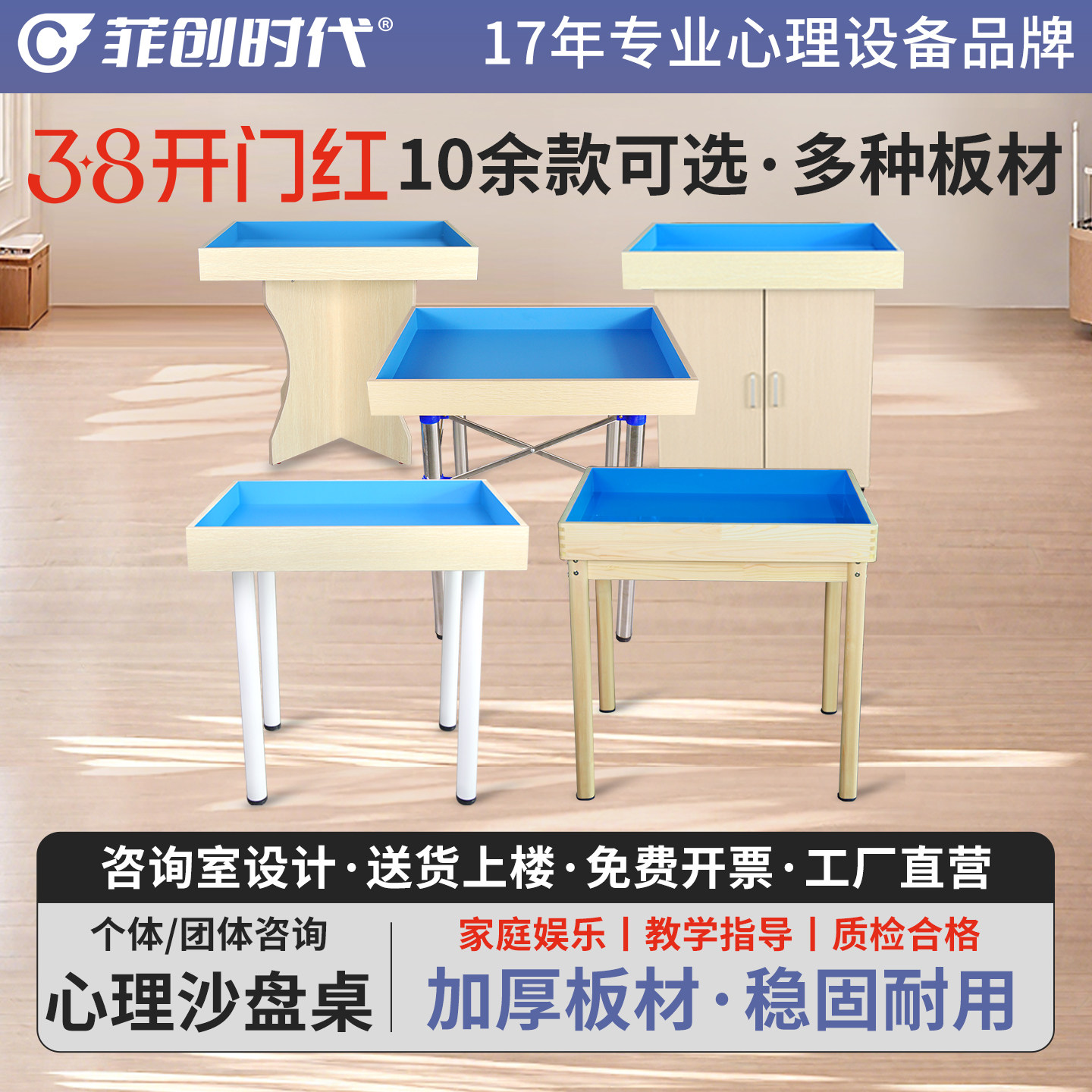 心理沙盘沙具咨询室实木圆形桌子陈列架沙箱柜折叠支架不锈钢团体