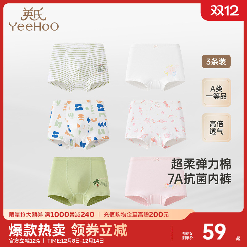 英氏儿童内裤透气7A抑菌宝宝平角盒装男女童打底短裤不夹屁屁内裤