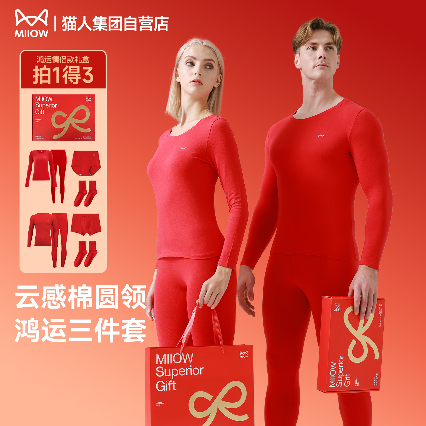 红豆大红色本命年秋衣秋裤马年生肖男女士保暖内衣内裤袜子礼盒装
