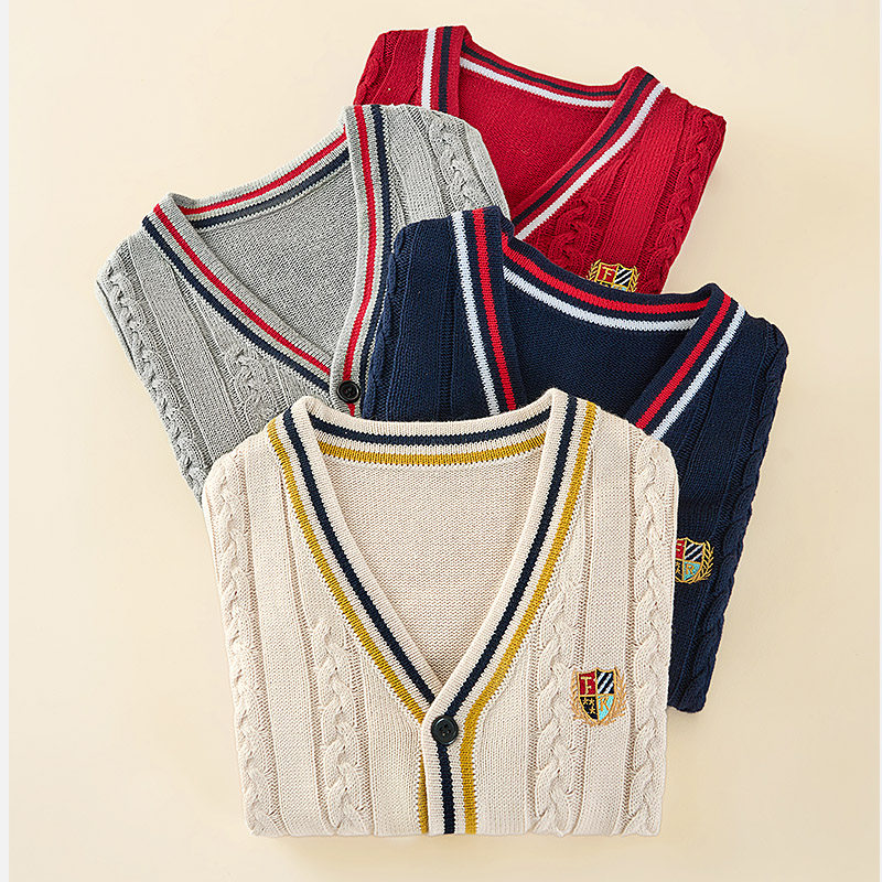 儿童针织开衫薄款毛衣扣子纯棉毛线宝宝小学生学院风男童春秋款女