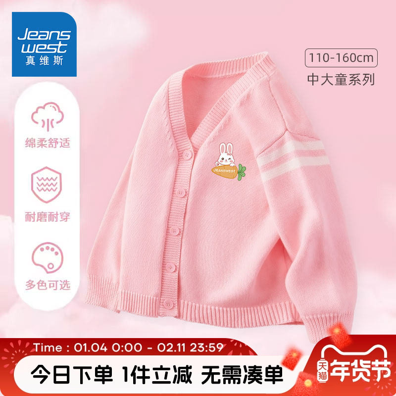 真维斯童装女童毛衣春秋款儿童秋季薄款学院风开衫小女孩春装外套