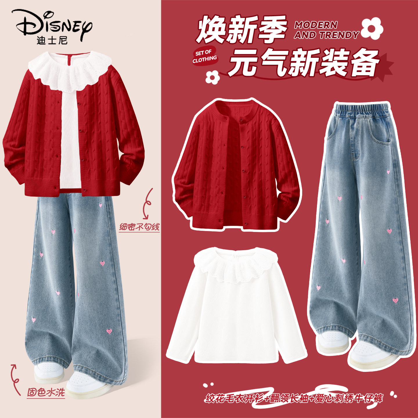 迪士尼女童套装春秋款2025新款童装秋季薄款毛衣好看儿童秋装裤子