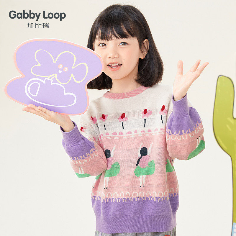 加比瑞童装女童粉色薄款毛衣春秋款休闲纯棉中大童线衫儿童针织衫