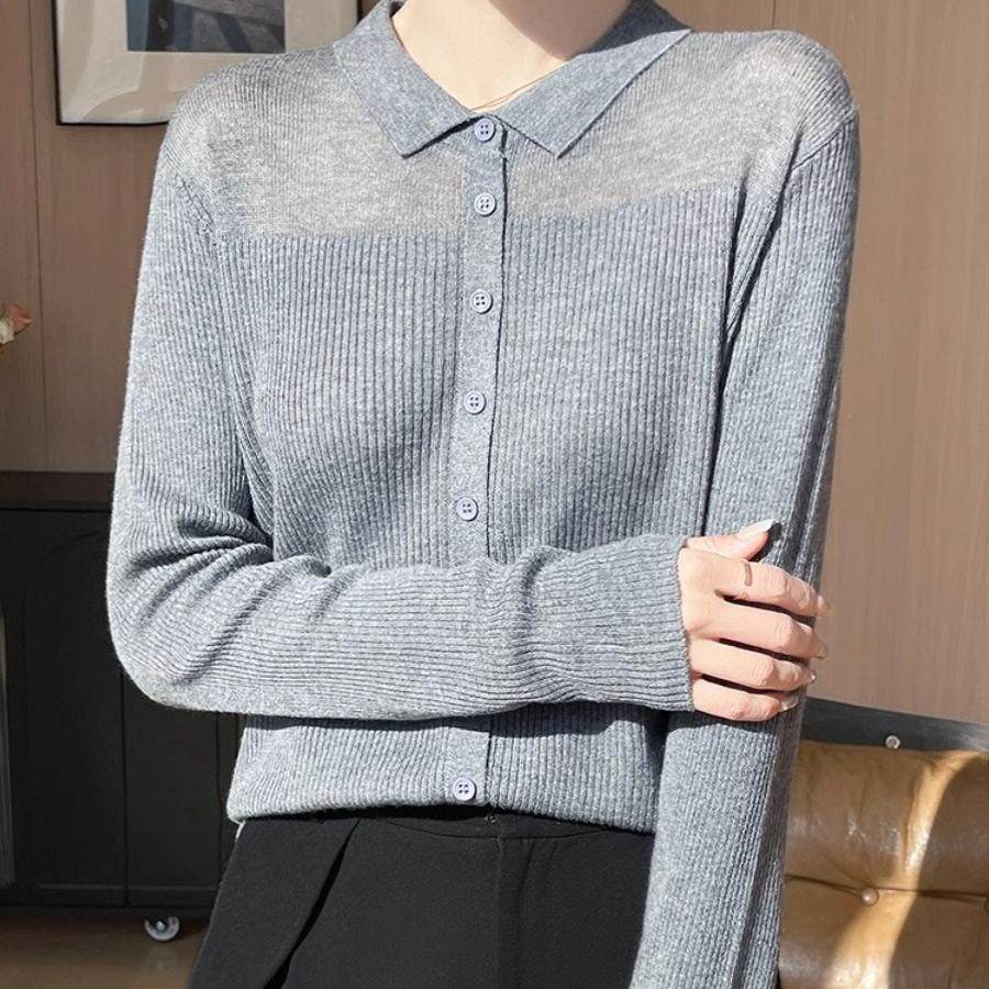 2025年秋款高级感POLO领针织开衫女长袖外套薄毛衣气质翻领上衣