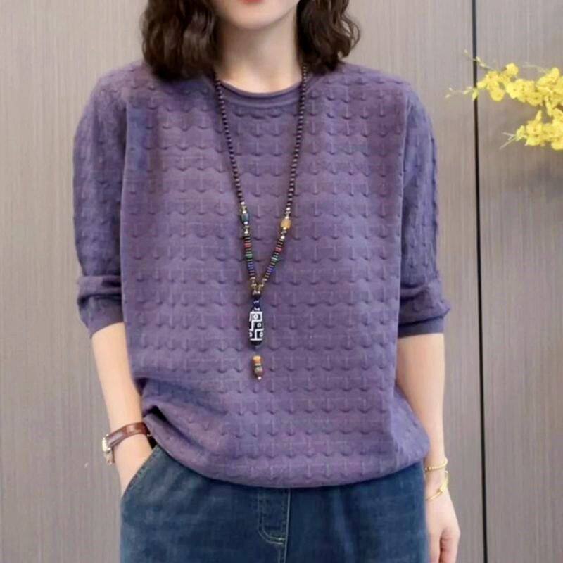 300斤加大码中老年多巴胺毛衣春秋款女妈妈夏季二八月穿打底衫薄