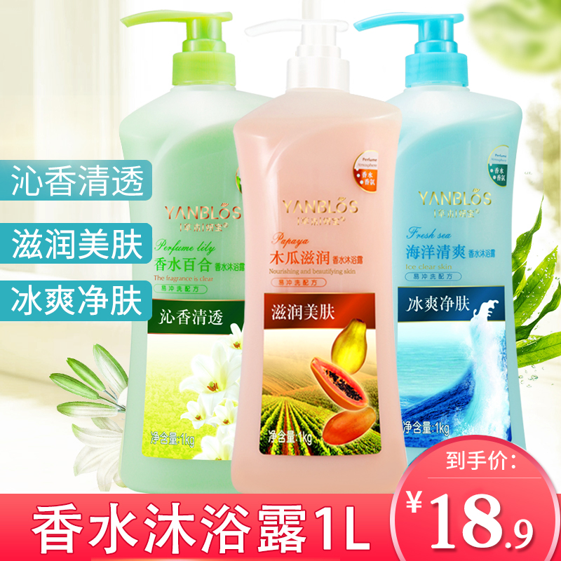 草本妍宝香水沐浴露1L冰爽保湿滋润美肤留香男女沐浴露家庭易冲洗