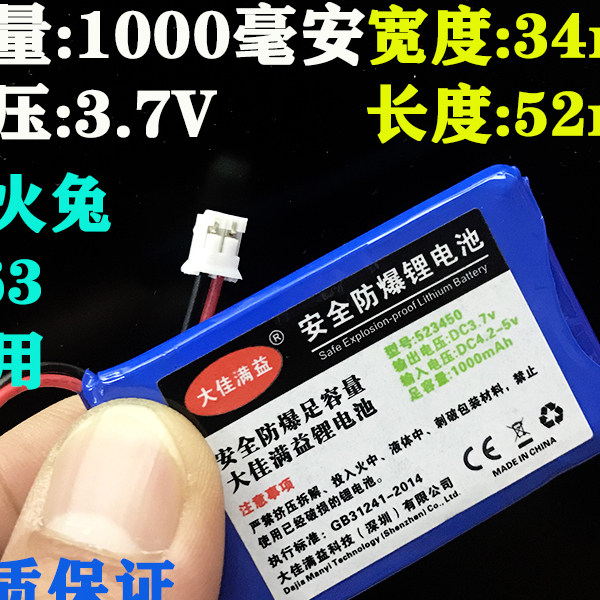 3.7V火火兔优彼亲子熊三代早教故事机小音箱电池523450锂电池插头