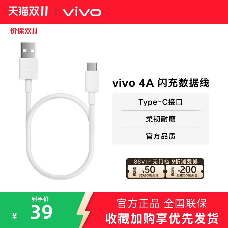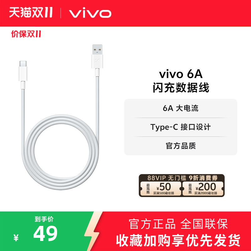 vivo 4A Type-C闪充数据线官方原装正品typec 适用iqoo安卓手机闪充线