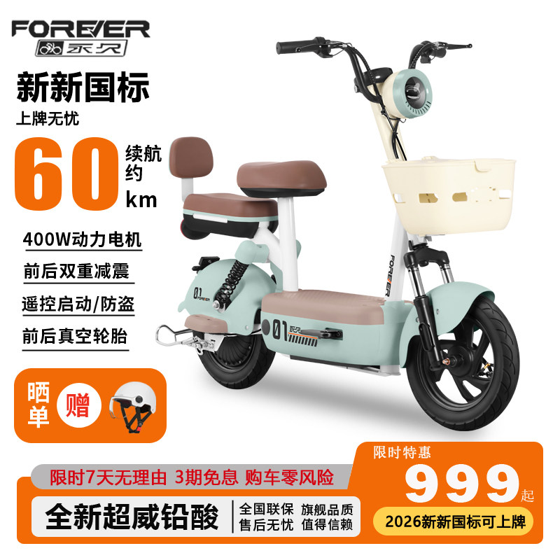 永久2025新款国标电动车电动自行车女士小型轻便代步长续航电瓶车