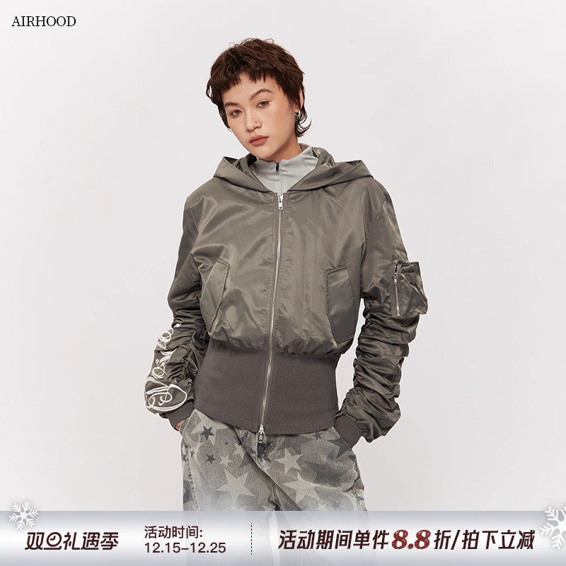AIRHOOD 秋冬季2025飞行员夹克女美式复古收腰街头连帽开衫短外套