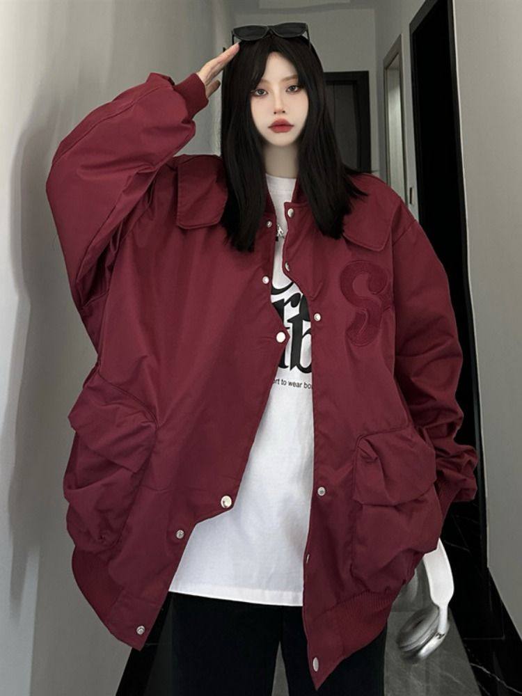 不规则排扣飞行员夹克女男2023春秋新款美式情侣宽松棒球服外套潮