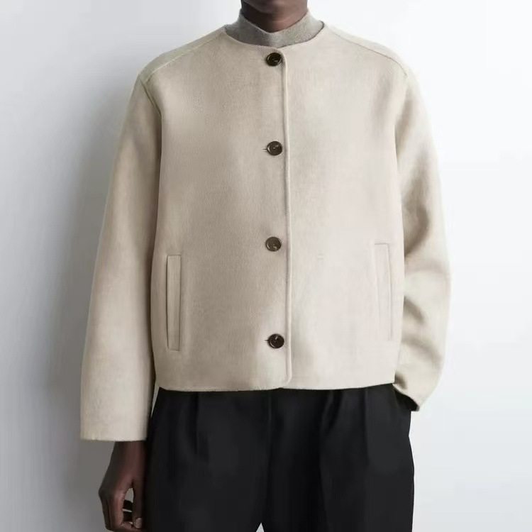 极简cosniu简约风双面羊毛飞行员夹克女2025冬季新品宽松毛呢外套