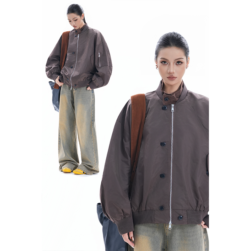 NERESUM美式复古立领飞行员夹克女潮牌cleanfit宽松百搭工装外套
