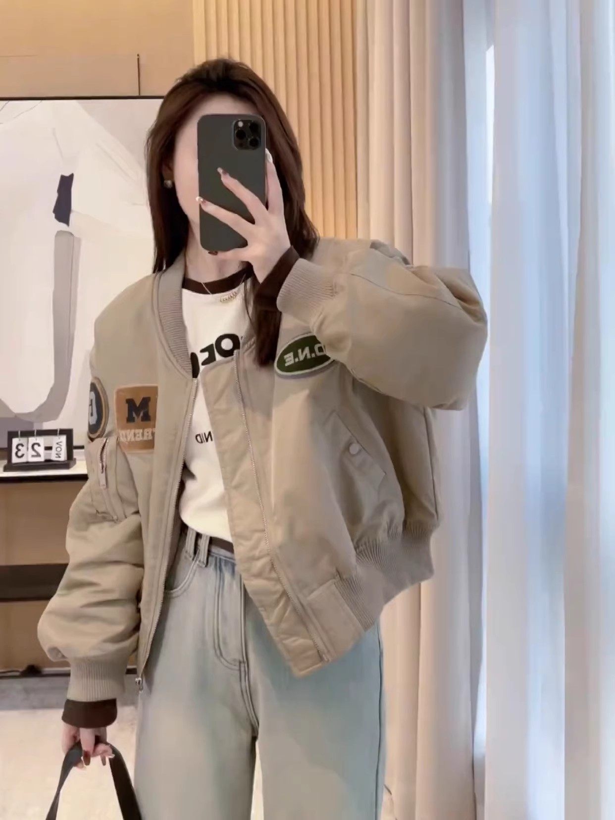 2025新款美式复古徽章飞行员夹克女冬季加厚休闲漂亮宽松街头外套