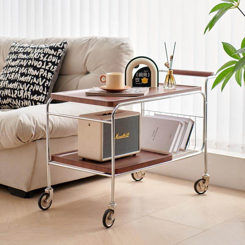 客厅可移动边几两层中古风小推车置物架沙发茶几家用床头柜电脑桌