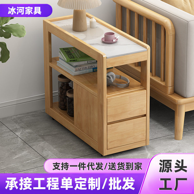实木可移动沙发边几小茶几客厅阳台沙发侧板柜带滑轮迷你岩板角几